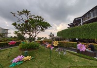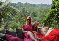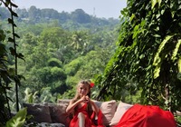 Unser frühes aufstehen macht sich bezahlt, wir fahren raus aus der Hauptstadt, Richtung Ubud, und sind die ersten bei der Schaukelanlage. So müssen wir später nicht so viel anstehen. Swing Heaven liegt am Berghang und ist extra für Fotomotivsüchtige Touristen gebaut. Etliche Schaukeln in allerlei Bauweisen laden ein, man wird überall von erfahrenen Angestellten betreut und auch fotografiert. Gute Idee. Festliche Kleider lassen die Damen noch ein wenig attraktiver als das übliche "zauberhaft" erstrahlen, und dann wird geknipst. Ich schätz mal 600 Fotos und etliche Videos nur hier.