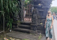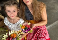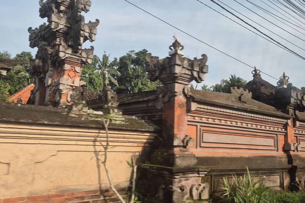 Die vierte Station heute ist eine große Tempelanlage. Wir werden angemessen eingekleidet, also in Tücher gehüllt um die Beine zu bedecken und ich bekomme sogar noch einen typischen Kopfschmuck aufgesetzt. Dann dürfen wir die vielen Schreine, die tollen Bildhauereien und Malereien bestaunen. In der Anlage sitzen zwei ältere Damen, die Opferschalen herstellen. Ganz toll ist das Polly eingeladen wird mitzumachen, die traumhaften Bilder in der Galerie wie immer. Wir erfahren noch mehr über die Götterwelt und den kulturellen Glauben (z.B. stteht die Drachenfigur für positive Energie, die zwei Säulen an jedem Eingang für das Gleichgewicht von positiv und negatic, und die Treppenstufen vor den Altaren blocken böse Geister). Jedem Besucher in Bali raten wir an sich so etwas anzuschauen, vielleicht wie wir, etwas abseits des Tourismus mainstream, gerne vermitteln wir einen Kontakt zu Made.