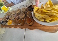 Dann haben wir Hunger. Made bringt uns zu einem einheimischen Restaurant, direkt an der Straße gelegen und doch hintenraus malerisch in einen Abwärtberghang reingebaut. Wir lassen uns normales als auch landestypisches schmecken. made ist herzlich eingeladen und erzählt Geschichte um Geschichte ;)