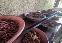Als zweites wollten wir eine Kaffeeplantage sehen, eigentlich ging es uns darum zu sehen wie hier Agrarwirtschaft betrieben wird und was es landestypisches gibt. Made hat natürlich wieder etwas ganz besonderes für uns. Gleich beim Eingang, schläft ein kleines Waschbärartiges Tierchen. Er heißt hier Luwak. Diese Tiere leben frei in den Kaffeefeldern und ernähren sich von den Kaffeebohnen. Diese wandern durch seinen Magen, werden nicht verdaut, sondern fermentiert (wie wir lernen), und sind deshalb besonders bekömmlich. Nach dem großen Geschäft des kleinen pelzigen Freundes, wird alles aufgesammelt, gereinigt und weiterverarbeitet. Das können wir auch selbst ausprobieren, wir schälen Kaffeebohnen und Emmy darf stampfen (also den Kaffee mahlen) in einem großen Topf mit ner Riesenkeule. Nach der Besichtigungstour sind wir zur Verkostung eingeladen, natürlich probieren wir den Luwakkaffee, aber auch etliche andere Kaffee- und Teesorten probieren wir. Von Vanille über Lemongras, kurcuma bis Cocs, bis hin zu Schmetterlingsblütentee. Am absonderlichsten war der Duriankaffee (Kotzfrucht), wir würden sagen das riecht fürchterlich, die Chinesen stehen drauf. Im Souvenirshop bleiben ein paar Euro, klar wir wollen ja zu Hause zusammen mit euch probieren.