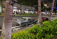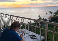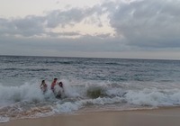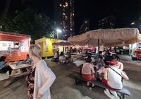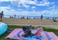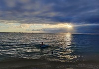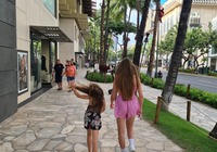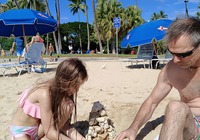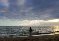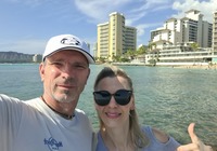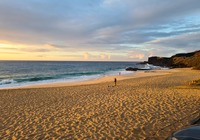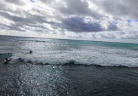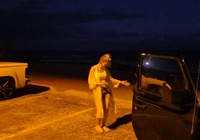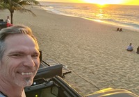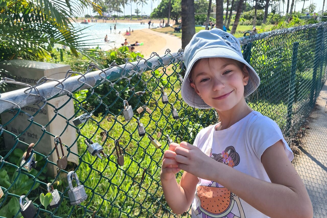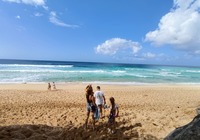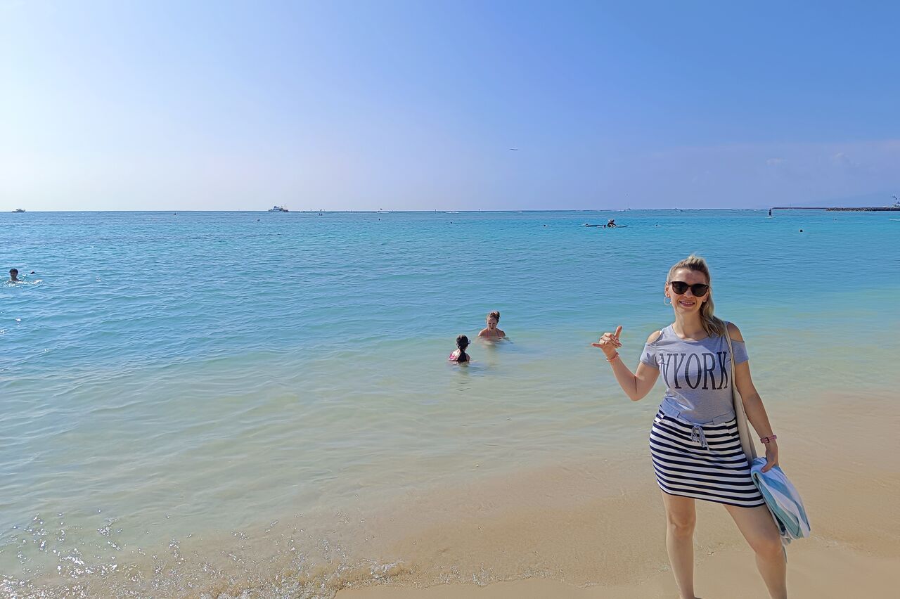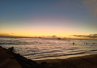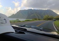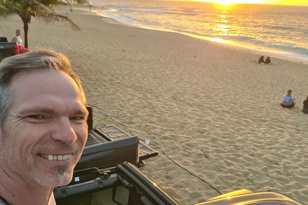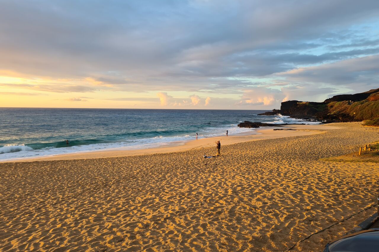 Zuletzt wollten wir eigentlich ein oder zwei Aussichtspunkte im Südwesten der Insel mitnehmen, kommen vorher aber am SandyBeach vorbei. Kurz entschlossen bleiben wir stehen, und finden einen fantastischen Sandstrand mit großen Wellen und etlichen coolen Leuten. Ein paar bodyboardsurfer tummeln sich in der Brandung, einige unbedarfte Touris wie wir sind da, und auch etliche Einheimische, teils mit Ukulele und coolen Autos. Jetzt ist es richtig, wir spüren die vibes. Hier stimmt es einfach. Alle Pläne übern Haufen, hier bleiben wir. Bikinis raus, ab in die Wellen, wir jauchzen, wir werden umgeschmissen, wir sind sandig bis in jede Körperritze, total egal. Wir fühlen uns pudelwohl, das ist so ein Moment für die wir unterwegs sind. Nun ists dunkel. Wir duschen am Strand. Neben uns sind ein paar junge Männer mit Alohamusik. Auch meine Mädels tanzen plötzlich auf dem Parkplatz. Voll wie früher, mein Beachdriverherz platzt fast vor Vergnügen. (wer die Beachdriver nicht kennt, das war meine Jugendclique, die Kadettkofferraumklappe mit dem Aufkleber habe ich heute noch).