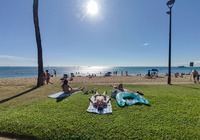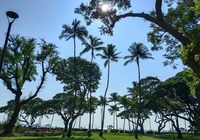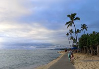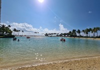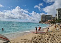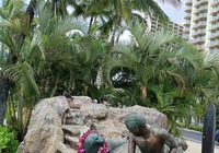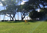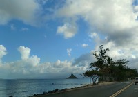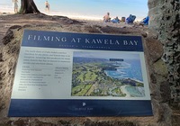 Weiter erkunden wir noch einige Strände der north shore (Nordküste), z.B. Banzai pipeline und Sunset beach. Insgesamt ist es überall ähnlich: Badeverbotsschilder, starke Wellen und recht steinig. Da die Kinder ins Wasser wollen suche ich eine Bucht. Kawela Bay wird nach Verdacht anvisiert und siehe da: Treffer. Völlig unscheinbar der Zutritt, das Auto bleibt 200m weg an der Straße stehen, ein Fußweg führt durch den Dschungel. Dann plötzlich öffnet sich der Wald und die Bucht ist da, seltsam bekannt kommt sie mir vor. Siehe da, ein Schild klärt auf: hier wurde für etliche Hollywood Blockbuster gedreht, unter anderem sind Strandszenen aus Tribute von Panem hier entstanden, cool, wenn ich das nächste Mal die Tribute sehe achte ich drauf. Noch mehr Filme siehe der Infotafel in der Galerie.