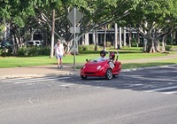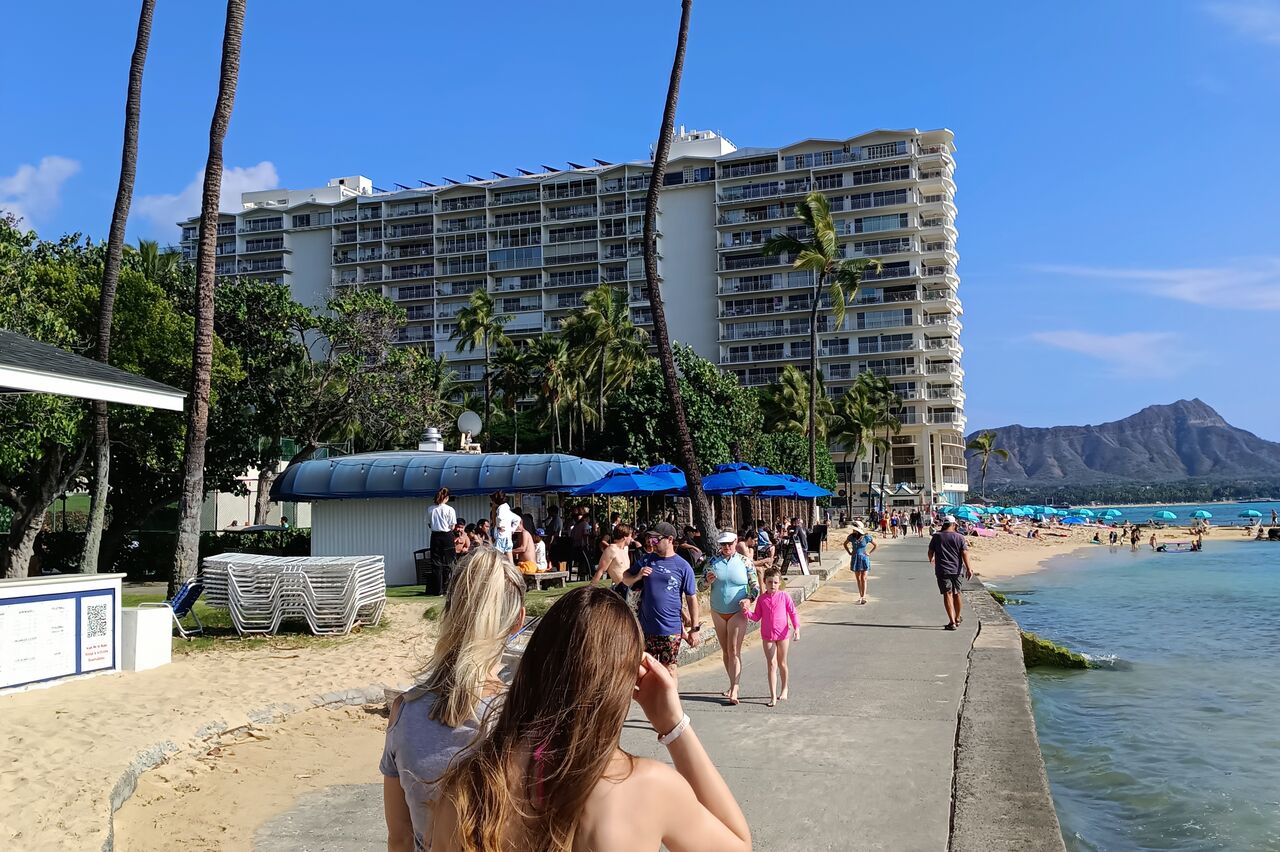 Früh morgens gehe ich los den Mietwagen holen, gebucht ist ein Ford Mustang Cabrio, bei dem Wetter hier nen offenen Flitzer, darauf freuten wir uns. Beim Vermieter dann ernüchternd."leider hat ein Vormieter den Wagen nicht zurückgegeben", ich hatte es schon im Gefühl, es kommt mir so vor als wird jede Reservierung angenommen und dann die Autos verteilt die da sind. Angeboten wird uns ein Jeep Wrangler Softtop, laut Vermieter die höchste Kategorie, ist auch halb offen, aber nicht was ich wollte. Neu buchen ist keine Option, also nehmen wir den großen schwarzen. Fährt sich übrigens etwas wie ein nasser Schwamm. Egal ;)