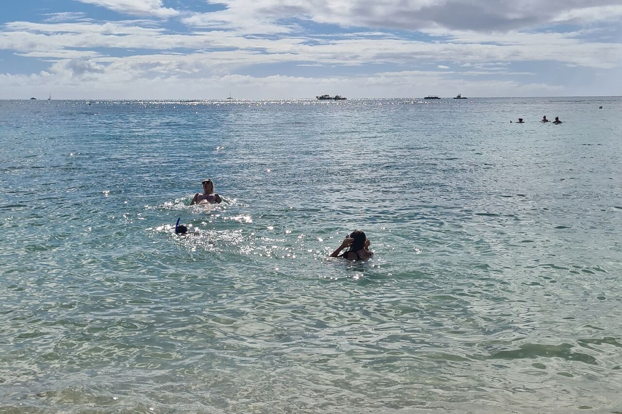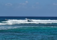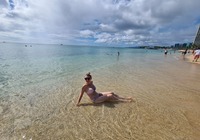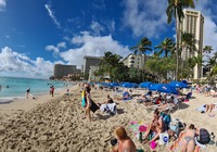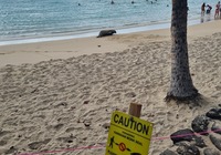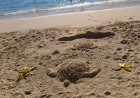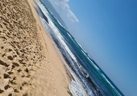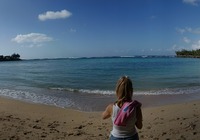 Turtle Beach war als nächstes angedacht, wegen einem Geheimtip der Empangsdame vom Vermieter lassen wir die Station auf dem Prospekt aus und steuern stattdessen Laniakea Beach an. Da gehen wir zwar nicht ins Wasser weil es etwas zu wild ist, aber dafür glasklar und wir sehen tatsächlich Meeresschildröten in der Brandung, nur 10-20 Meter weg von uns tauchen sie durch die Wellen und strecken immer wieder ihr Köpfchen aus dem Wasser. Einmalig, hat sich schon gelohnt die Tour.