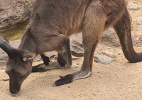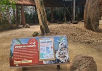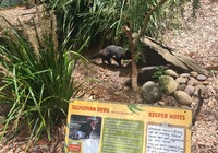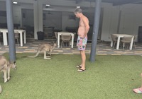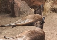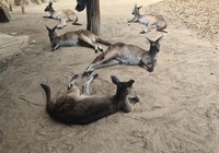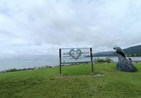 Am Strand entdecken wir Schilder. Ein Nachruf. Das Känguruh Emmy Lou lebte hier 25 Fahre am Strand, das sind 115 Menschenjahre. Es steht geschrieben es ist ihr Strand, wir sind nur Gäste, wir sind ein bisschen traurig.