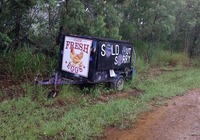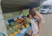 Wir sind los. Das Navi lotst uns 15 km über Schotterpiste, das rumst im Gebälk. Am Strassenrand stehen Autohänger von den umliegenden Farmern, angeboten werden Eier, Früchte usw.. Wir holen uns Ananas, frischer geht nicht.