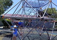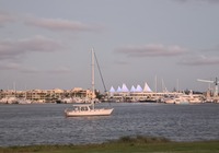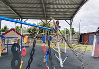 Heute wollen wir in die City. Sydney ist ne Riesenstadt, wir haben etwas Bammel vor der Fahrt hinein. Aber wie schon verraten, nehmen wir die Tram. Deren Haltestelle ist 20 Minuten zu Fuß von uns, das läuft sich weg. Tickets zu kaufen ist auch ganz einfach, ein Automat fragt nach Ziel und Personen, und mit Karte wird gezahlt. Bis Center haben wir gekauft, fahren aber dann zwei Stationen weiter, fast bis zum Hafen. Zu Fuß geht's weiter, wir finden einen Riesen Spiel- und Kletterplatz und die Erinnerung: hier waren wir schonmal. Ein paar Meter weiter beginnt darling harbor, der Hafen und Touristenbereich. Von hier sind es zwei Stunden zu spazierenen bis zur Oper, das ist das Ziel erstmal.