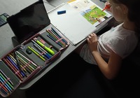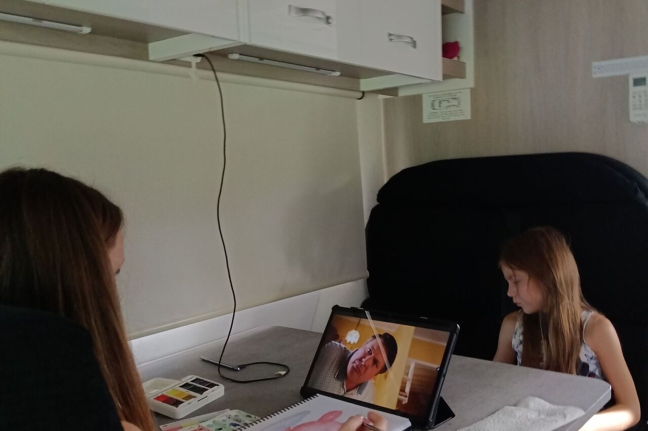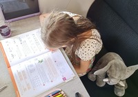 In der Schule ist heute Deutch, Englisch und Kunst dran, klappt gut.