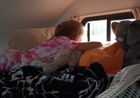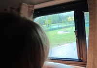 Nachts als wir schlafen, hören wir plötzlich Geräusche vorm Auto. Mama schreckt hoch, jemand klinkt an der Tür. Als die aufgeht will Papa gerade todesmutig aus dem Bett springen, als Polly den Kopf reinsteckt und "Hallo" sagt. Mann, Schreck lass nach. Adrenalin ist genug ausgeschüttet, die nächste Stunde schläft keiner mehr. Kinder sind manchmal so .....