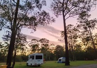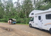 Und dann ab die Post, linke Fahrspur und mitten durch die Großstadt. Das klappt aber supi, der Linksverkehr hat sich recht schnell an uns gewöhnt. Wir halten am Supermarkt, stocken Vorräte auf für die ersten Tage und fahren erstmal los, wie weit genau wissen wir noch nicht. Unterwegs versuchen wir online einen Übernachtungsplatz zu buchen, leider vergeblich. Es sind Ferien hier. Alle Campingplätze an der Küste sind ausgebucht. Als wir dann etwas landeinwärts suchen finden wir "the buckets stay", Brad´s Campingplatz. 4,8 Sterne bei googlemaps - kann ja nicht schlecht sein. Wir sind an New Castle vorbei es reicht für heute. Die erste Nacht wollen wir nicht irgendwo am Highwy oder in der Wildnis stehen. Auf dem Platz dann die Ernüchterung: Brad´s Platz ist in Wahrheit nur ein Stück Wald mit nem Toilettenhäuschen und ner Campingküche. Und ohne Strom. Und ohne Handyempfang. Das ist schon irgendwie Bestrafung. Aber nu sind wir da, bezahlt ist auch, also runterschlucken und schlafen ;)
