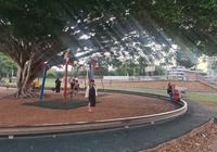 we are on the road again, der Weg ist das Ziel, Richtung goldcoast, 650km stehen auf dem Plan. Unterwegs suchen wir  stundenlang nach einem Campingplatz, aber scheinbar ist alles ausgebucht.  Vor Ort finden wir einen Riesen- Spielplatz, wir bewegen erstmal die eingerosteten Gliedmaßen. Langsam wirds Zeit einen Parkplatz zum schlafen zu finden, auf alle Anfragen gab es Absagen, wir arrangieren uns, das Auto ist ja recht autark, bis auf die Dachklmaanlage und die Mikrowelle funktioniert ja alles mit Gas und 12 Volt. Schließlich stehen wir am Stadtpark-Parkplatz, das schaut gar nicht so schlecht aus. Aber dann, spät, weit nach 22 Uhr werden wir vom Sicherheitsdienst vertrieben, immerhin bekommen wir einen Tip: auf nach main ins benachbarte Wohngebiet, da kann man stehen, leider wird die Nacht heiß und laut. Es kühlt runter auf nur 28 Grad und die Kreuzung vor uns schein der örtliche Viertelmeile-Startplatz zu sein...