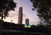 An der Oper wird eine Bühne aufgebaut, deswegen sind die Zugänge oberhalb gesperrt. Wir kucken ein bisschen, machen ein paar Fotos, und schlendern langsam zurück. Bei Mc Donalds holen wir Wegzehrung (kleine Eis und Slashies). In einer Stunde sind wir verabredet, mit Christopher und Naz (das ist der Schwager meines kleinen Bruders mit Gemahlin). Wir sind zum Essen eingeladen, im Butchers Block. Voll lecker, es gibt Rippchen, Gnoccis, Burger, Chicken, Pommes, Salat und Desserts. Für jeden was dabei. Wir quatschen über Gott und die Welt, teils auf deutsch, teils in englisch. Einige Tips holen wir uns ab, als Empfehlung den botanischen Garten hier und etliche Hotspots für Kuala Lumpur. Dann ist es schon dunkel, wir laufen zusammen Richtung Tram und verabschieden uns. Sehr schön wars, Danke nochmal.