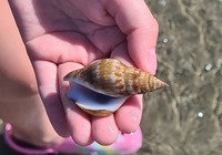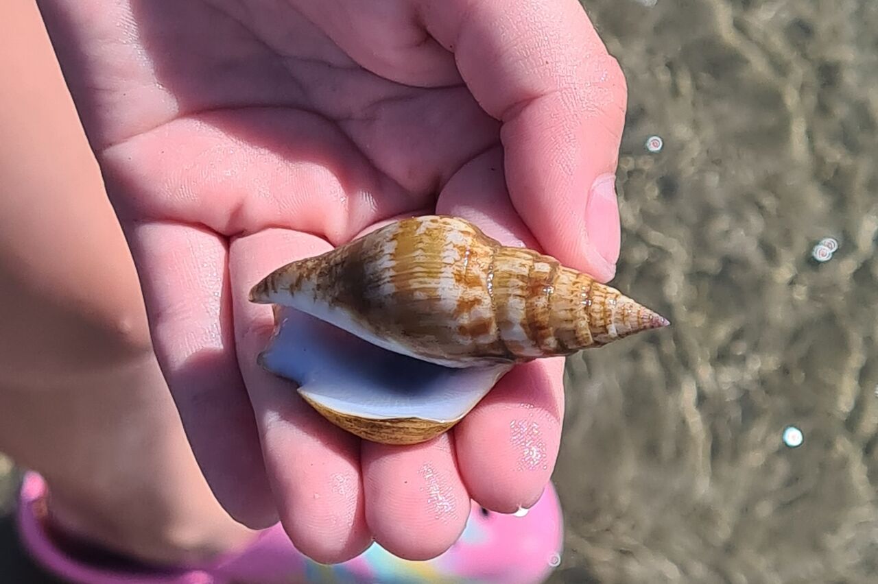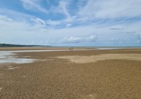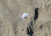 Heute früh waren wir wieder die Ebbe erkunden, und wir konnten kleine Krabben beobachten. In etwa ein bis drei cm groß krabbeln die rum, und wenn wer kommt verbuddeln sie sich. Da es schon einige Hundert oder tausend bei uns im Abschnitt sind wollen wir gar nicht drüber nachdenken was alles im Sand steckt.