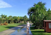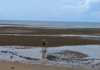 Die Schule enthält heute einen Riesen Praxisteil. Die Kinder erleben life Ebbe und Flut. Sie lernen warum und wie das Wasser sich bewegt und wir erforschen den freigelegten Meeresboden. Außerdem haben wir einen öffentlichen Wasserpark direkt vor dem Campingplatz, der muß natürlich probiert werden. Interessant ist die Tierwelt hier auf dem Platz, die kleinen Papageien sind zu hunderten da, auch bin chicken laufen wieder rum, und Abends kommen die Fledermäuse. Aber keine Sorge, die tun nichts.