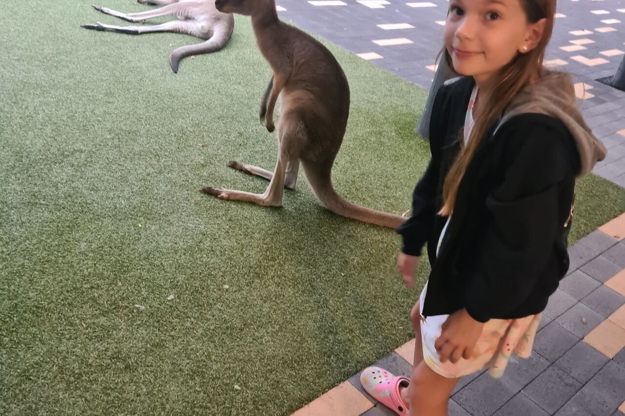 Halbzeit unserer Reise. Und es regnet. Wir hatten sowieso Platztag geplant, Pool geht auch im Regen. Es ist wieder mal etwas mehr Zeit für Schule. Die Känguruhs hoppeln den ganzen Tag rum, (Mama auch - es gibt kein Internet). Emmy besiegt Papa im Schach. Ein insgesamt ruhiger Tag. Morgen wollen wir weiter, wir hören heute das erste Mal von flash floods nördlich von uns, also Überschwemmungen. Angeblich sollen sogar Straßen gesperrt sein.