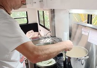 Heute Abend essen wir auf dem Platz Burger. Am Pool steht ein Imbisswohnwagen, die Burgernight war angekündigt aber nicht sicher wegen dem ollem Wetter. Aber alles klappt und wir gourmetieren ein kleines Festmal. Sehr leckere frische Burger mit lokalen Früchten, tolle Pommes dazu und etwas zu trinken. Zur Feier des Tages regnet es sogar mal nicht.