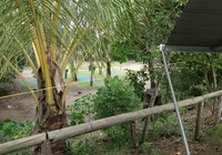 Abends beim spazieren über den Platz begegnen wir einer Schlange. Sie liegt mitten Weg, ist ca. 1m lang und bewegt sich nicht. Polly flitzt schnell los ein Handy holen, ein Foto muß sein. Genau dabei springt sie dann los, sie mag wohl kein Blitzlicht. Wir rennen schreiend weg. Später googeln wir und stellen die Art fest, eine scrub-phyton, angeblich nicht giftig und ungefährlich. Ob die Schlange das auch wußte ?