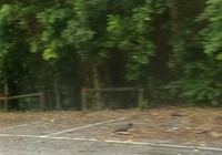 Nach dem Frühstück laufen wir ein paar Schritte, (die Kalorien verbrennen), entdecken einen großen Spielplatz um die Ecke, der war man siehts kürzlich unter Wasser. Hinterm Süielplatz fließt ein Bach, über die Straße - statt untendurch.