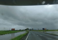 Unterwegs sehen wir die ersten überfluteten Gebiete. Die Nachrichten erzählen über eine Jahrhundertflut an der Ostküste. Nun realisieren wir, das wir da mitten drin stecken. Es sind nur 125km heute geplant, wir tanken voll und machen uns das erste Mal Gedanken Vorräte anzulegen. Es fällt extrem auf, das in unsere Richtung niemand unterwegs ist,die Sperre dürfte jetzt unmittelbar vor uns sein, Rechts und links der Straße steht immer mehr Wasser, es folgen aufgestellte Warnschilder "road closed".