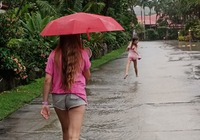 Wir bleiben heute fast den ganzen Tag auf dem Campingplatz. Es regnet ausdauerd und ergiebig, langsam machen wir uns Sorgen. Nach dem Mittag bewaffnen wir uns mit teils geborgten Regenschirmen und laufen zu Fuß zum Supermarkt. Emmy genießt das Wetter, hopst durch alle Pfützen und wir stiefeln durch die kleinen Flüsse die mal Gehwege waren. Im Markt sind wir kurz geschockt. Es gibt kaum Obst, kein Fleisch und Brot mehr, viele Regale sind leer. Durch etliche Stellen im Dach tropft es durch, in den Gängen stehen überall Eimer und Aufwischsachen. Wir überlegen und kaufen was es noch gibt, die nächsten Tage wirds wohl früh, mittags und abends Nudeln geben. Also kein Problem ;)