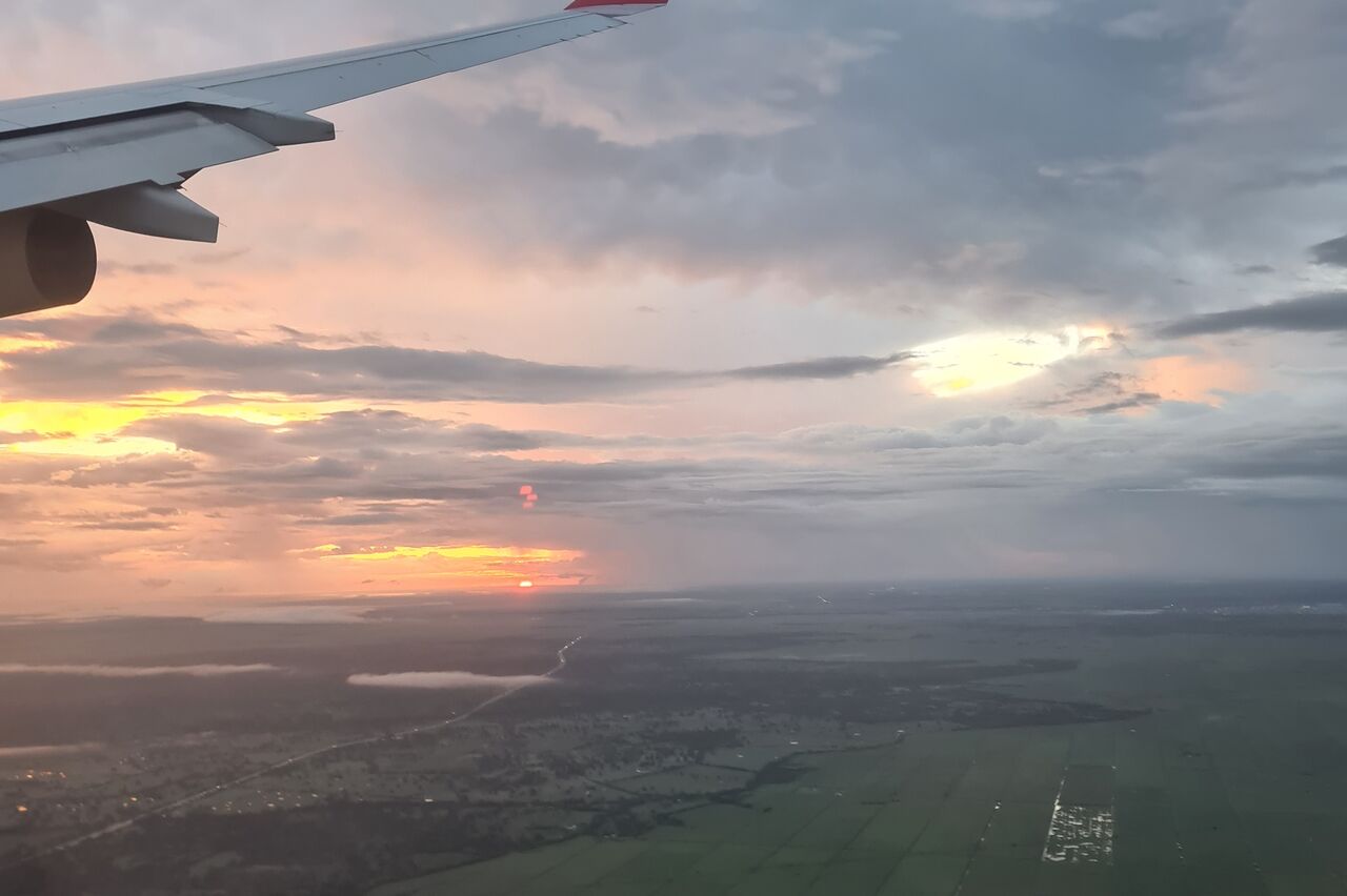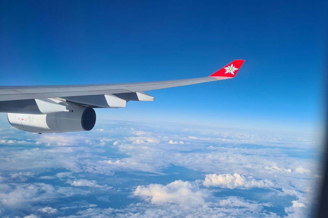 Rein in den Lufthansa Airbus, Handgepäck hoch, und Polly ruft schon mit Panik in den Augen:"Papa, hier ist was nass ! Ich kucke schnell: ja, wirklich, das Handgepäckfach schwimmt quasi. Leider unsere Schuld, eine Trinkflasche ist aufgegangen. Die Sitznachbaren waren nicht ganz so begeistert weil doch etwas nass geworden, aber die Stewardess hilft mit vielen Tüchern und Schokolade.  Eine Stunde später sind wir in Zürich, nur zum umsteigen. Bei Burgerking gibt's Frühstück. Kurz nach Mittag starten wir die erste Langstrecke. Wir Eltern sitzen zu zweit in der drittletzten Reihe, Fensterseite, die Kinder hinter uns. Fliegen kann echt entspannt sein. Genügend Filme und "Edelweiss" (Schweizer Airline) sei Dank (es gab jede halbe Stunde ein Snack oder eine andere Kleinigkeit) gehen die 10 Stunden echt schnell vorbei.
